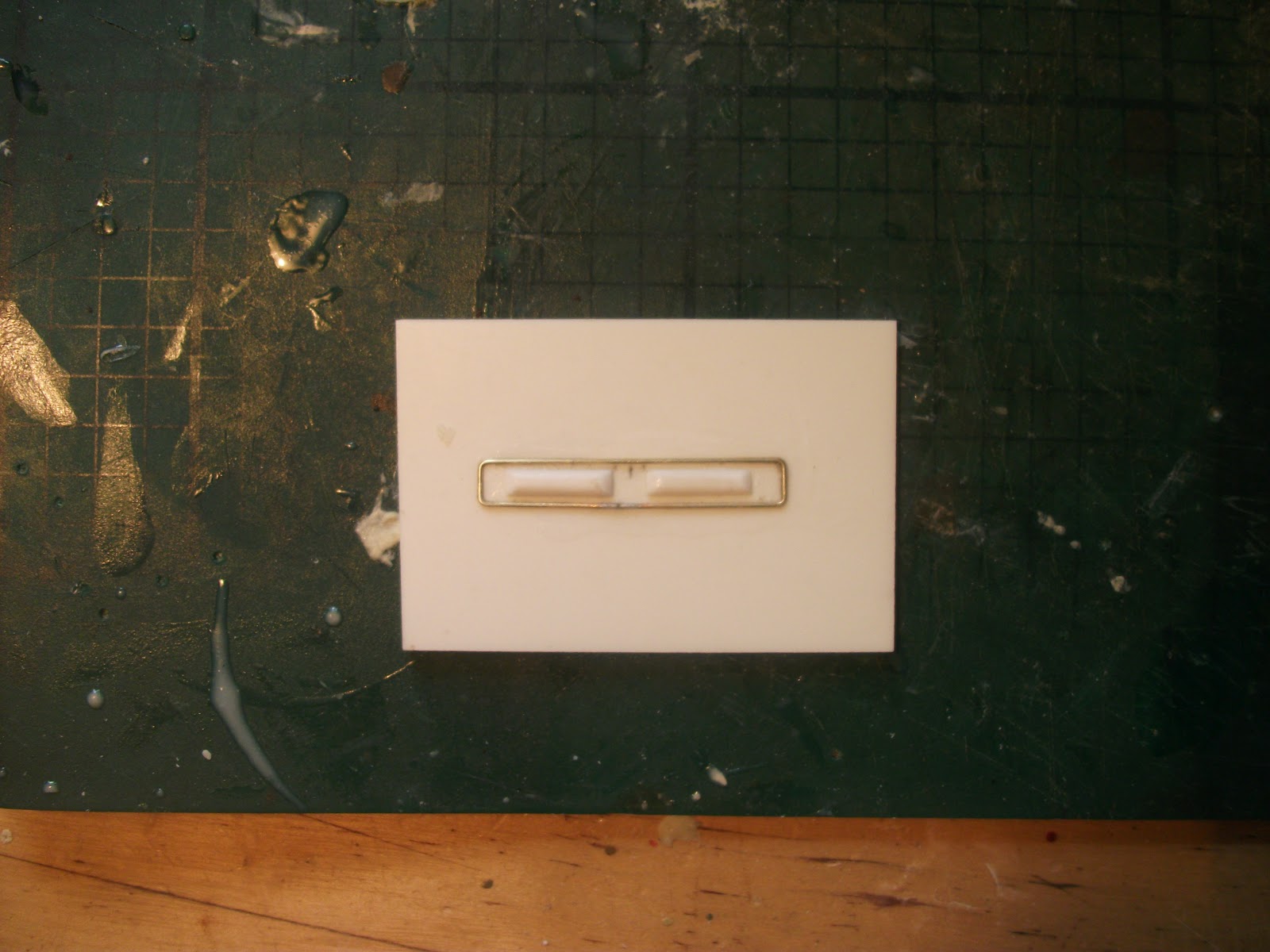 Here it is mounted on styrene sheet ready to have a moulding box built up around it and buried in RTV compound.